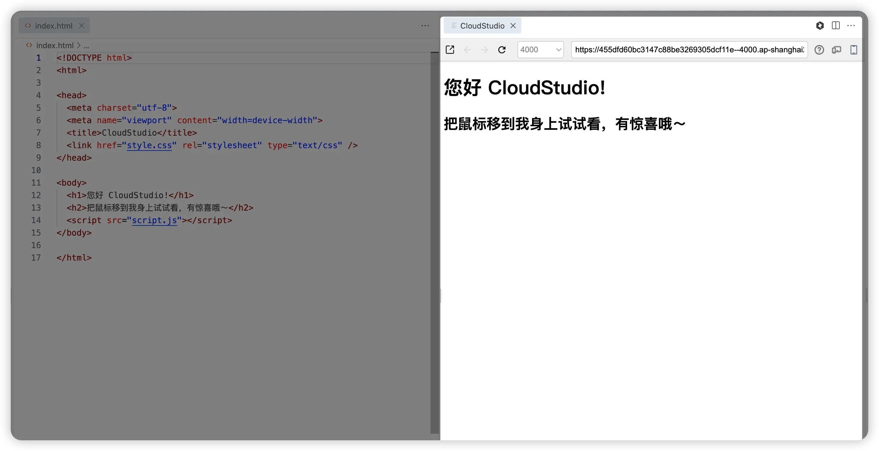启动成功后,通常会在弹出一个新的标签页 CloudStudio。