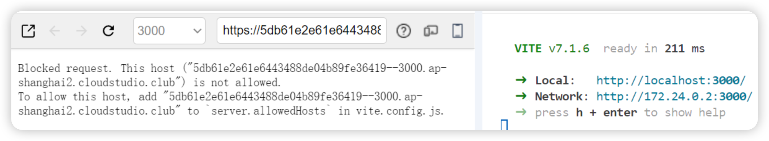 - Vite 服务正常启动,但网络请求被阻止