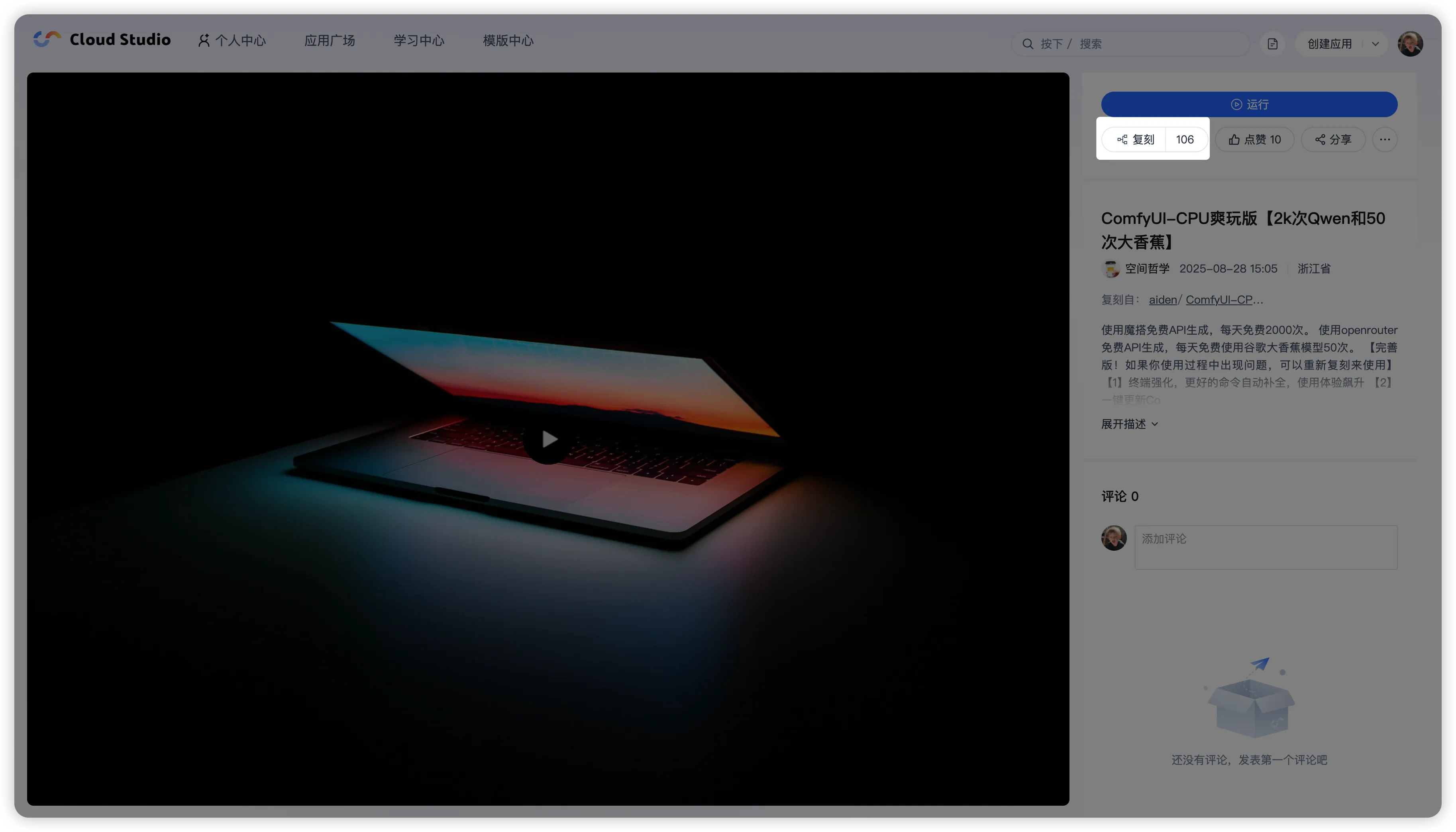 - 访问 CloudStudio 模板中心(https://cloudstudio.net/t);
