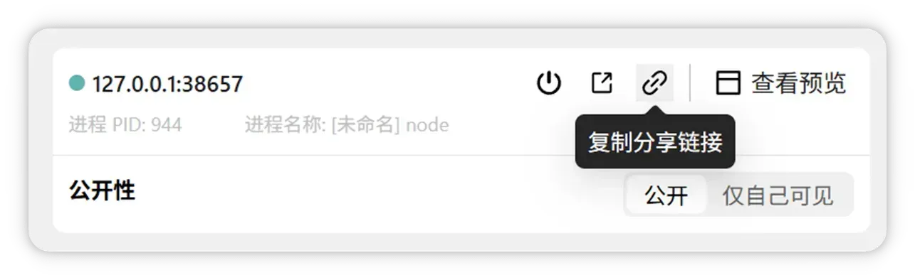 - 公开(默认):链接可被外部访问(需服务已启动),适合对外展示。