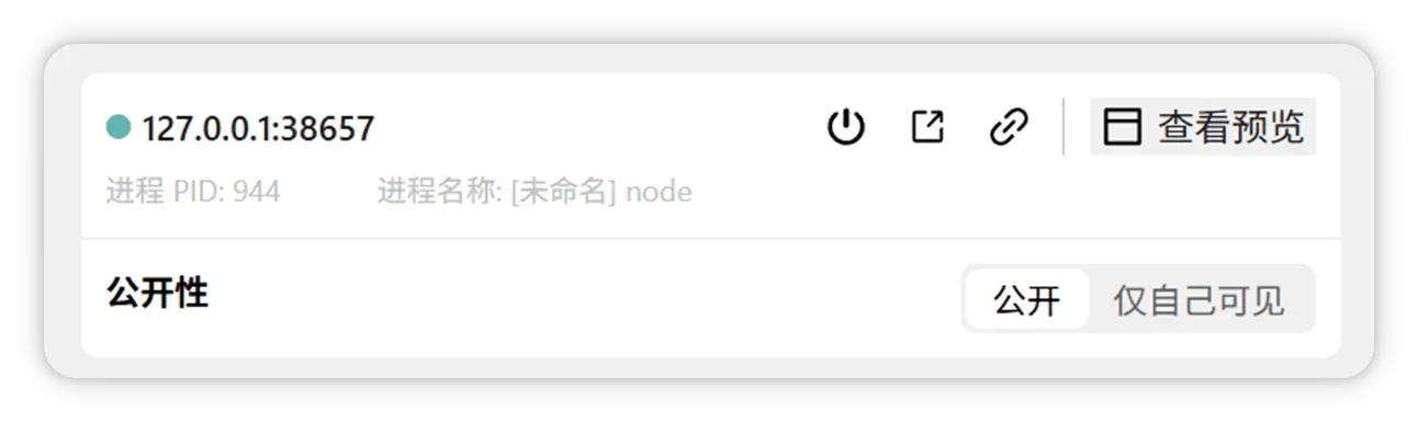 复制分享链接:点击 「复制分享链接」 按钮,快速复制端口访问链接(需确保进程已启动)。