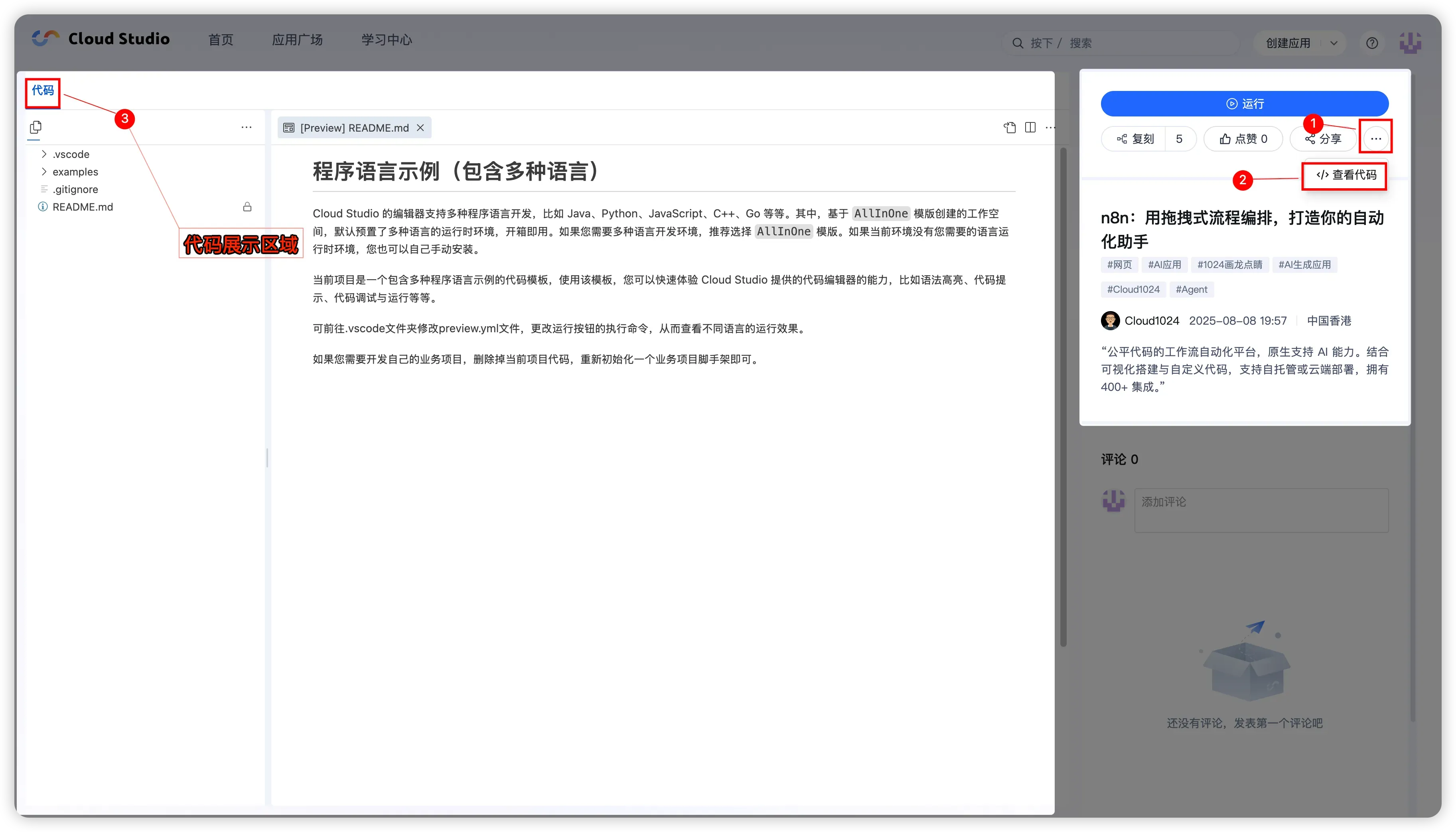 应用主页是展示单个应用详细信息的核心页面,汇聚了应用的基础信息、操作入口及互动功能,便于你了解应用详情、开展二次开发或直接体验应用。
