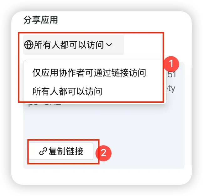 包含隐私/敏感数据的应用,建议优先选择仅协作者可访问,并谨慎对外传播链接。