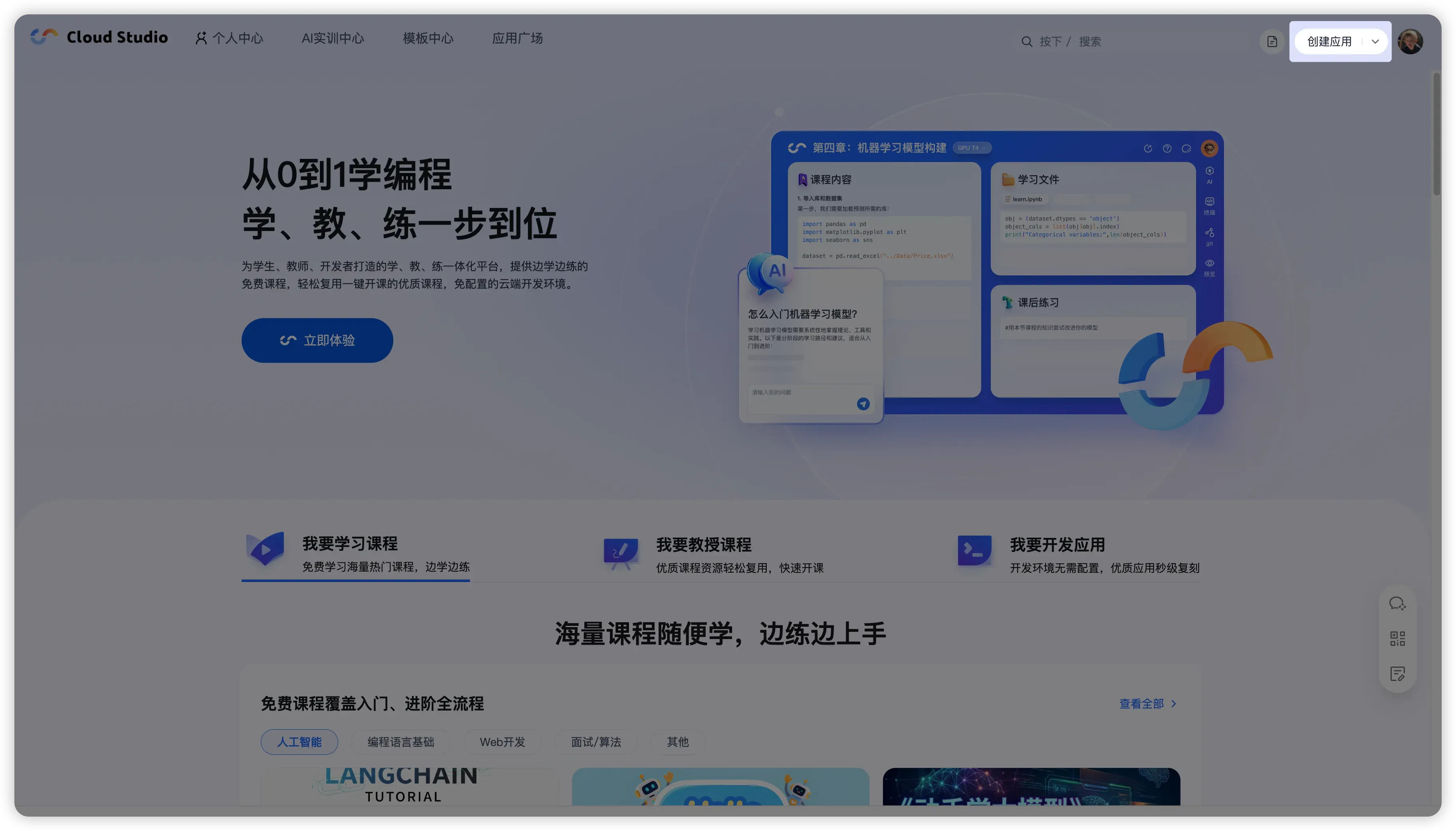 - 进入创建页(右上角「创建应用」或个人中心入口)