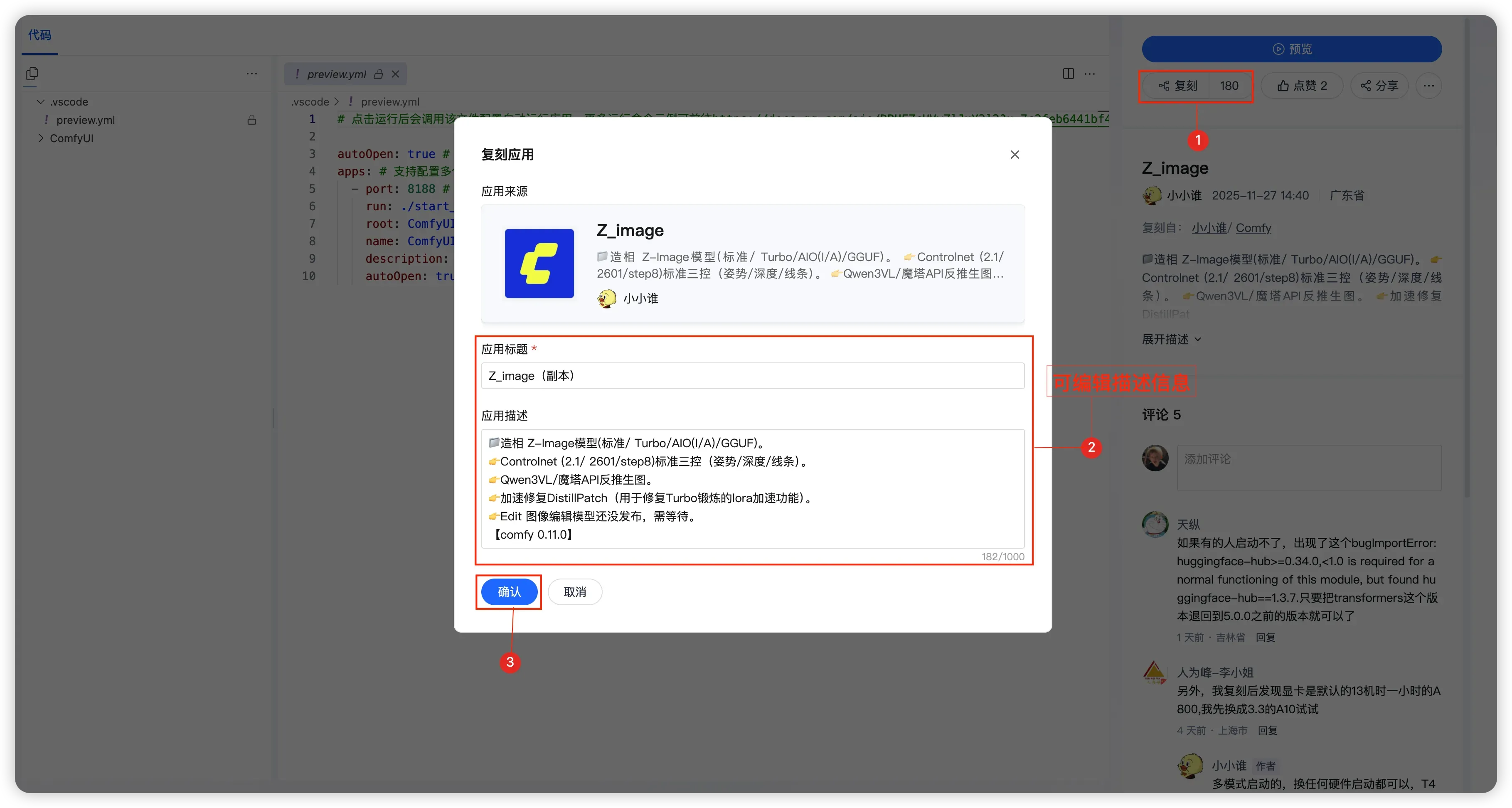 如果你想基于他人的应用快速迭代,推荐使用「复刻」生成你的副本: