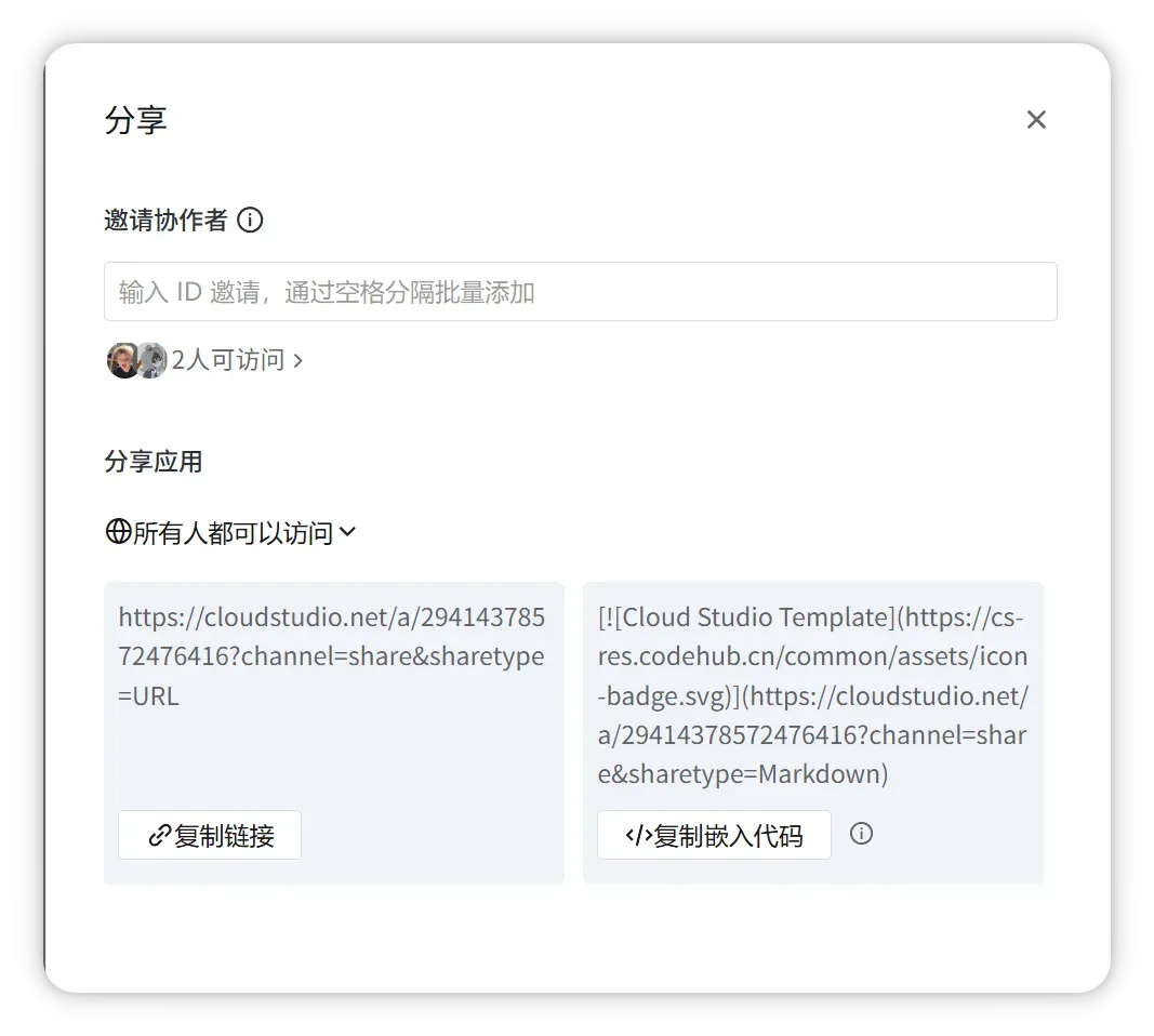 - 在分享设置中选择 「所有人都可以访问」 → 点击【复制链接】(或直接生效)。