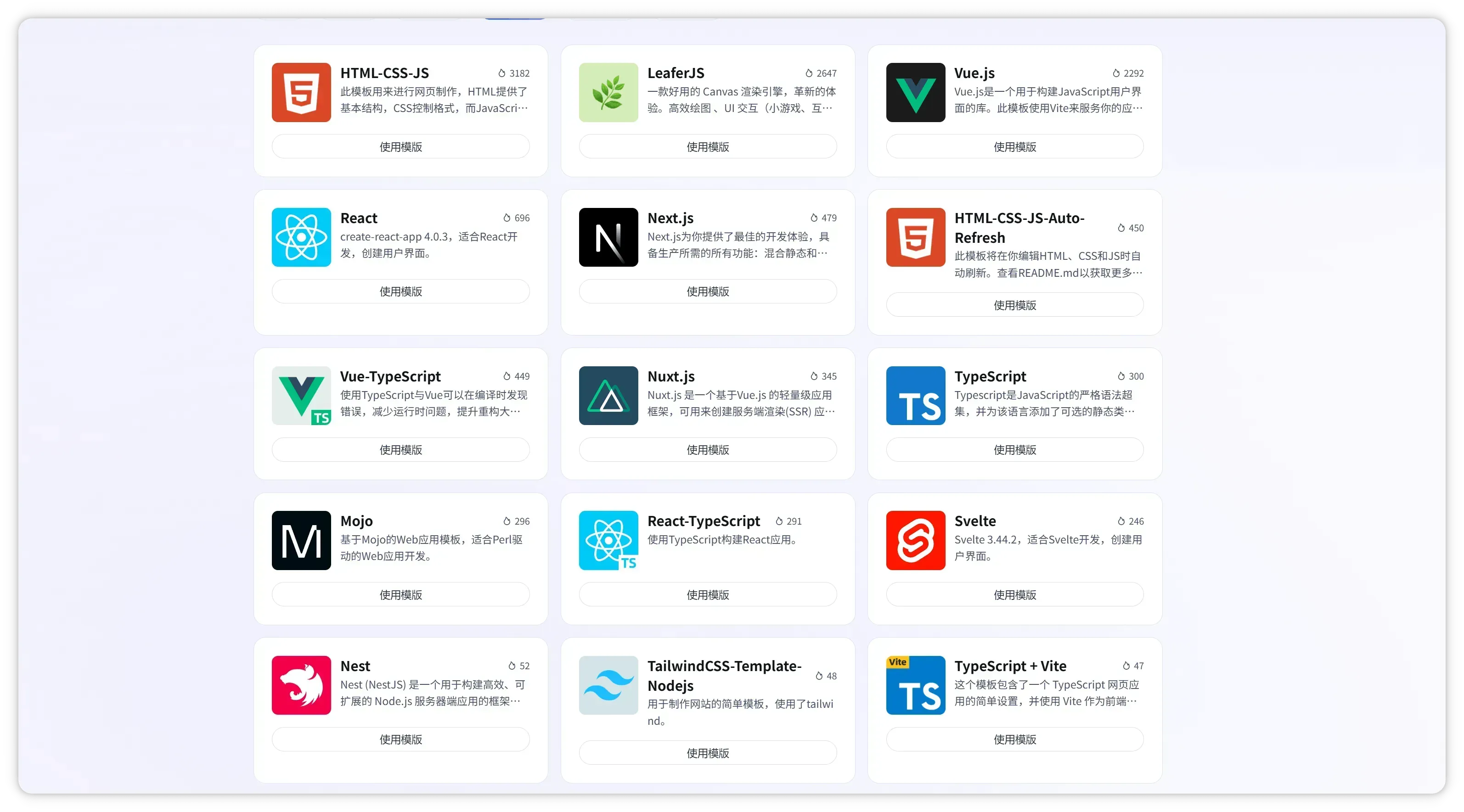 - 想快速跑起来一个方向的项目:选对应方向模板(前端/后端/静态网站)