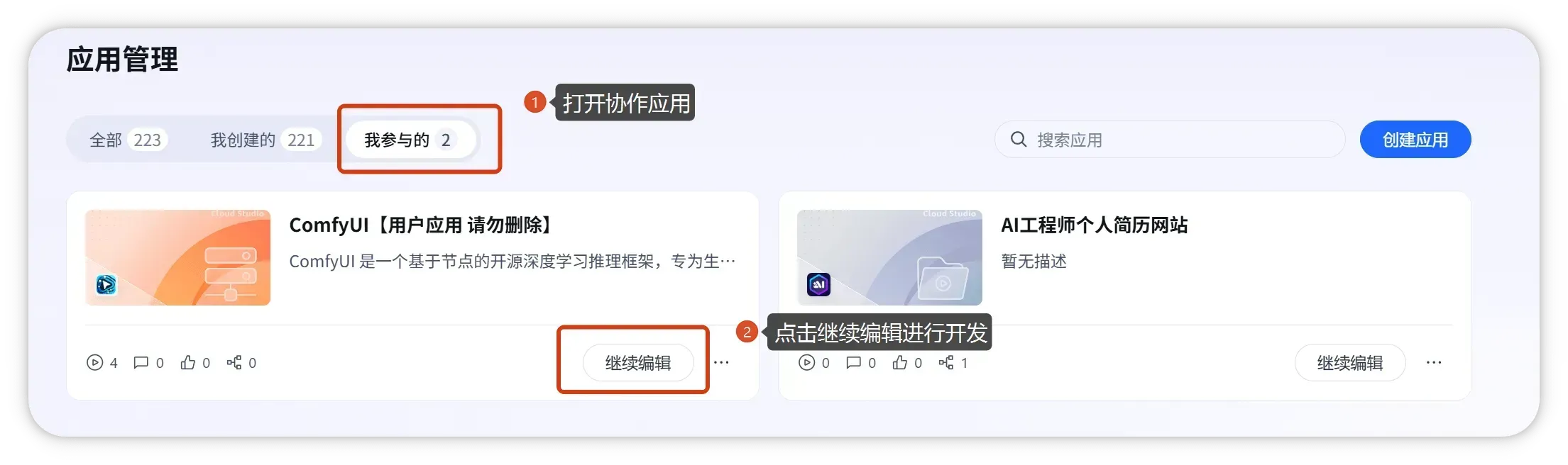- 协作编辑会使用应用所有者的算力与计费配置。