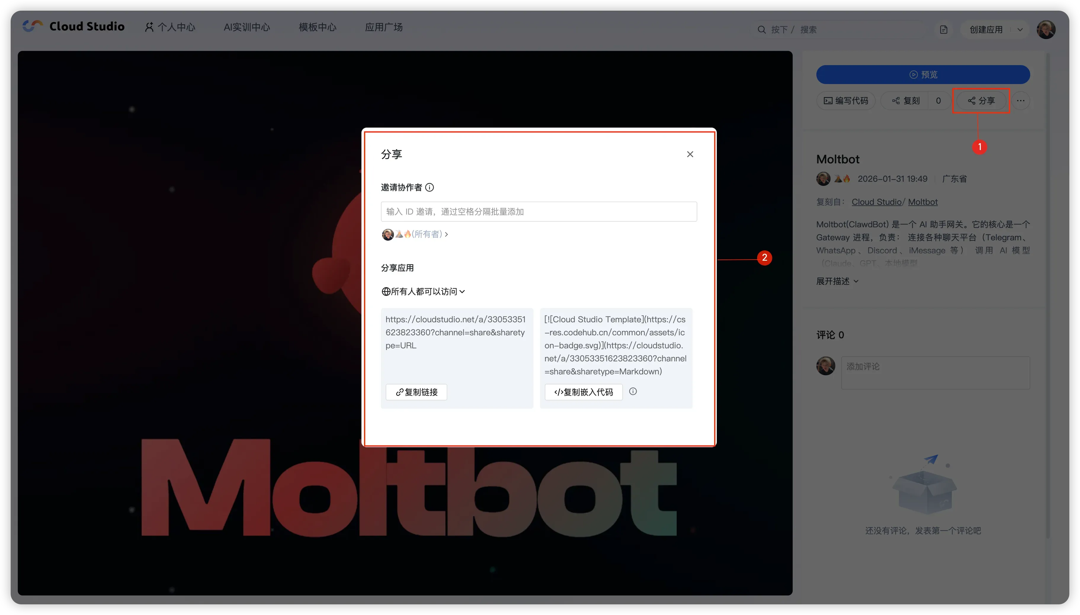 - 对方登录 CloudStudio 后打开链接,即可获得对应权限