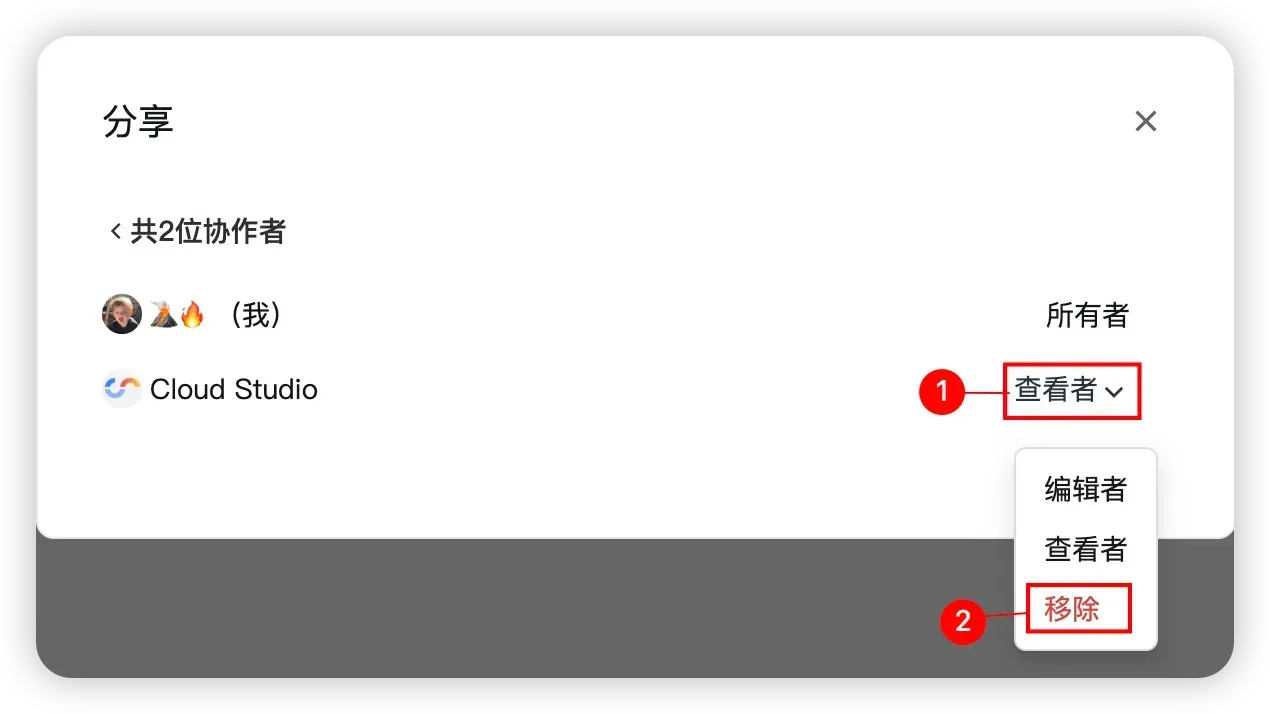 - 选择权限:编辑者 / 查看者