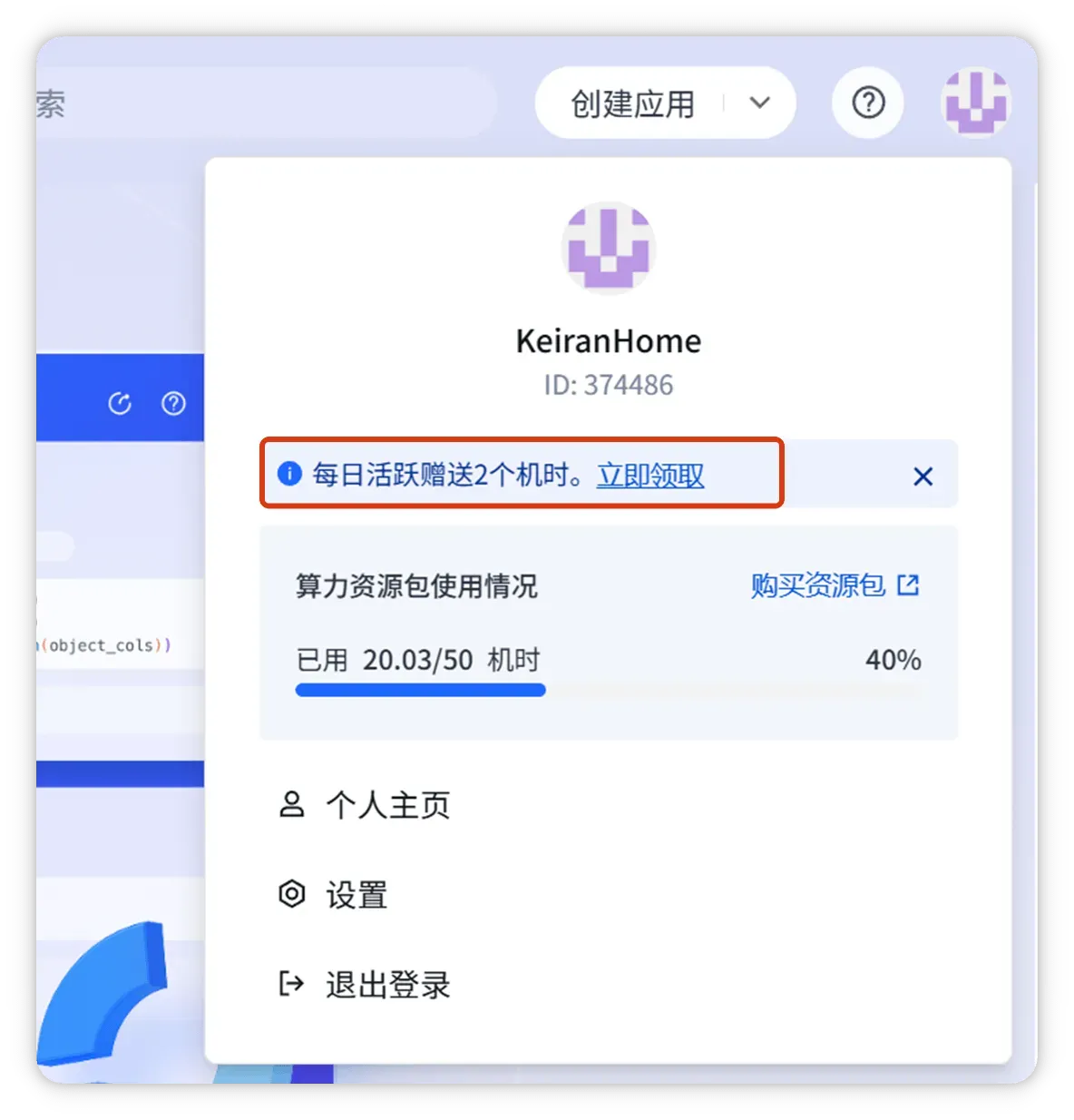 - 机时有效期:领取的2个机时仅在领取当日有效,无论是否使用,都会在当日24点自动清零,建议领取后及时用于项目开发或学习;