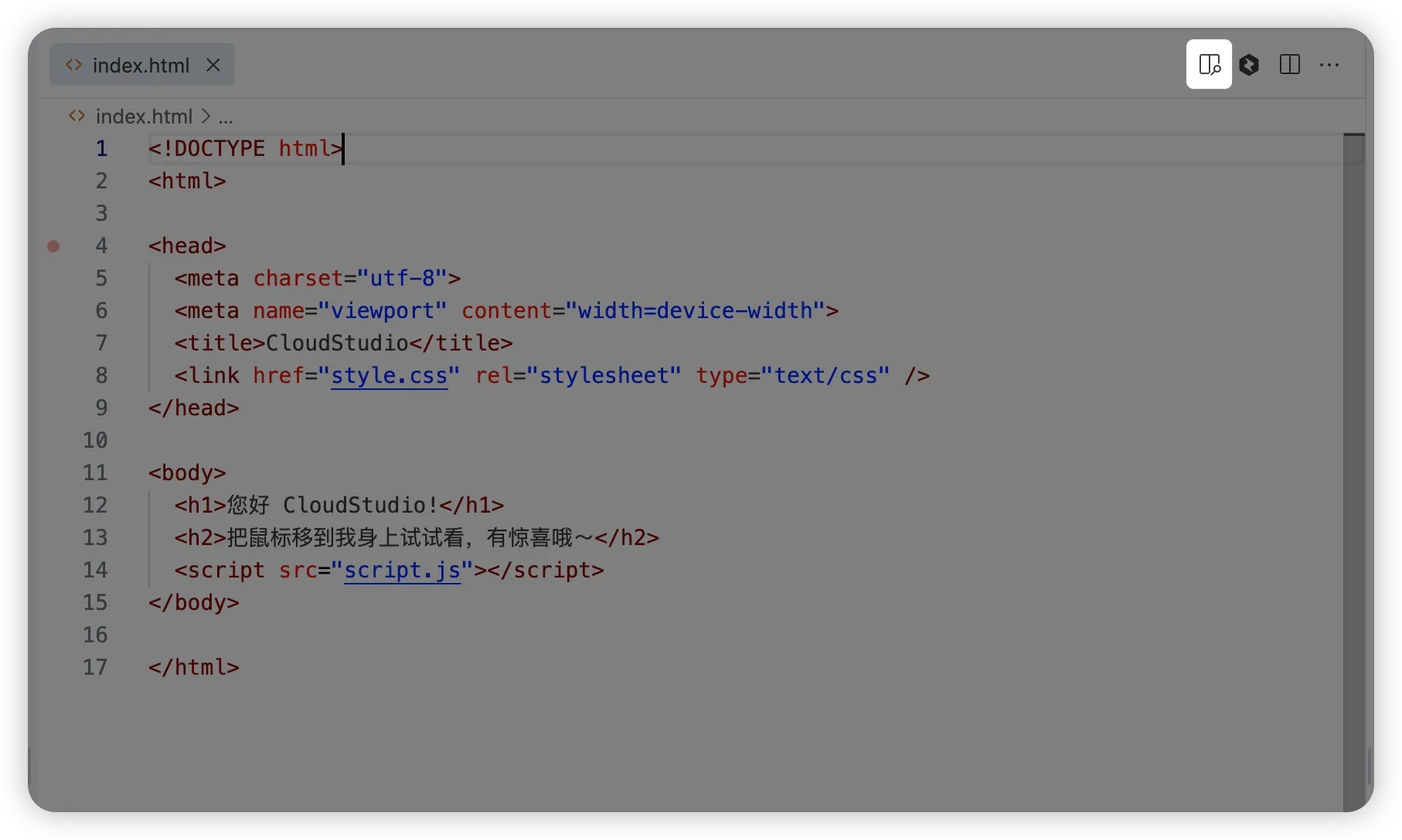 - 并且标签页也只能有一个 HTML 文件才可以,如果有其他标签页,那么这个图标就不会出现。
