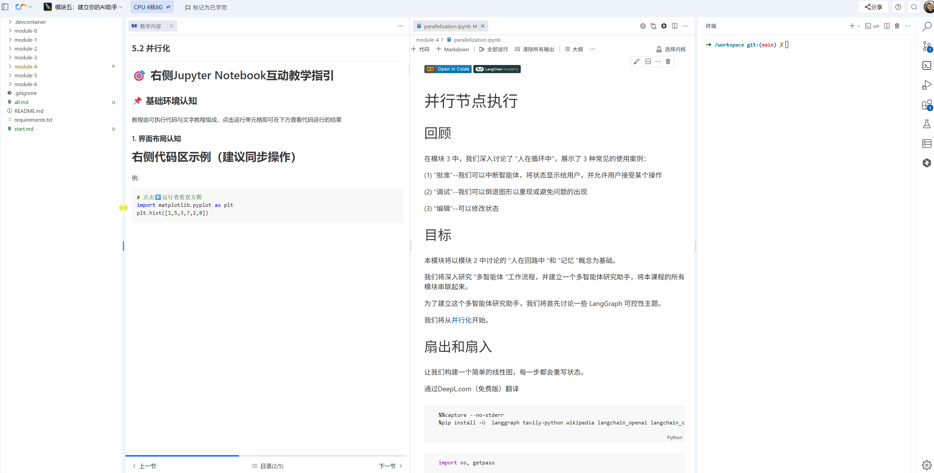 | 3. 教案区域 | 图文+代码教学:理论讲解与代码示例结合,支持代码一键复制、目录跳转、重点高亮 | 理论与实践同步呈现,复制代码可直接实践,减少输入错误 |