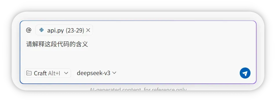 适用于主动发起 AI 交互(如无选中代码时提问)的场景。