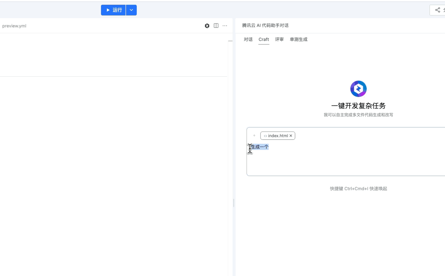 Craft 是 CodeBuddy 的进阶能力,支持通过自然语言指令或已有代码文件,自动生成多文件应用(如完整前端页面、后端接口服务),无需手动编写基础代码。