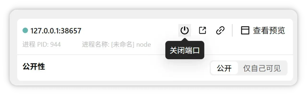 端口插件用于查看与管理工作空间内的端口,并提供预览入口与访问权限设置。