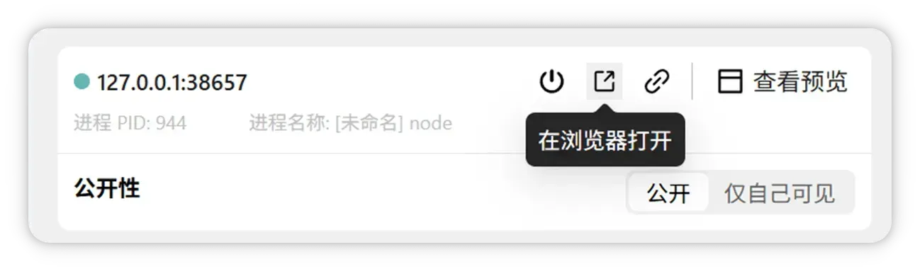 在端口卡片中点击 「查看预览」,会自动打开 Web 预览窗口并加载该端口页面。