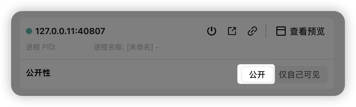 • 公开(默认):链接可被外部访问(需服务已启动),适合对外展示。