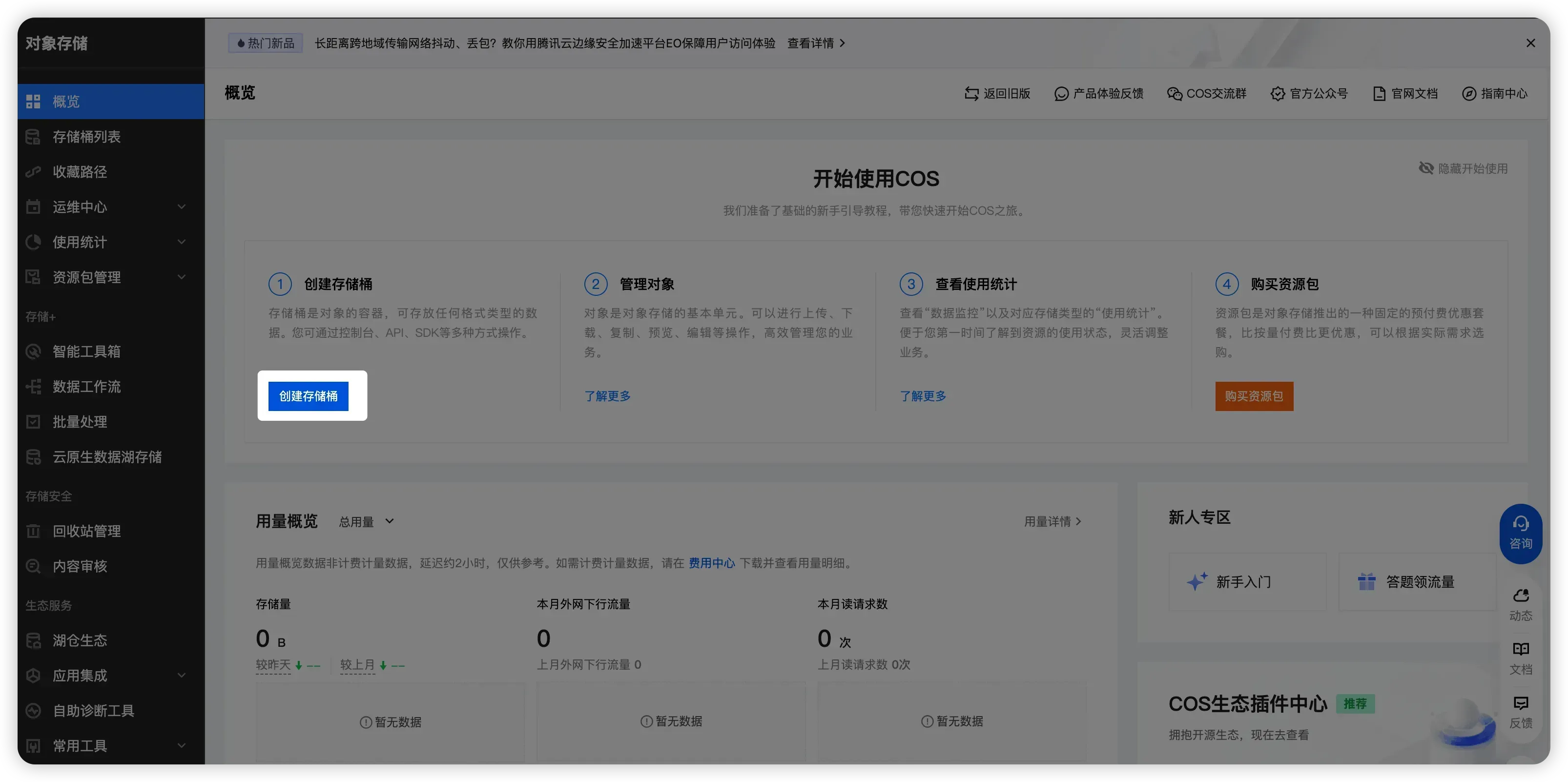 - 创建 COS 存储桶:登录 腾讯云 COS 控制台 创建存储桶(建议权限选“私有读写”)。
