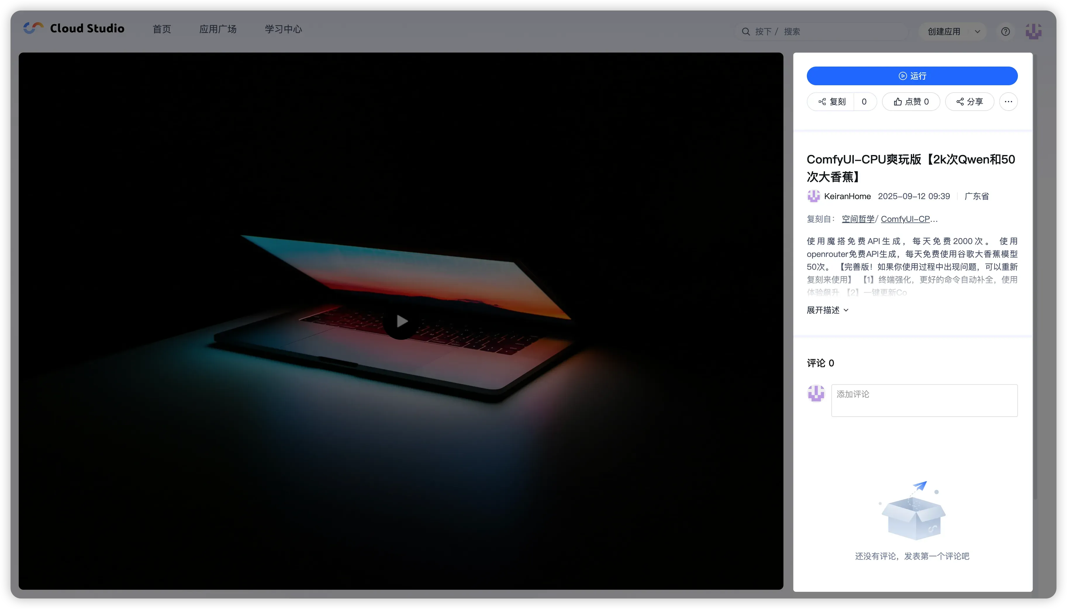 无论是查看自己创建的应用,还是他人公开分享的应用,均可通过点击对应应用的卡片进入应用主页。进入后,该应用的完整信息与所有可用功能将清晰呈现。