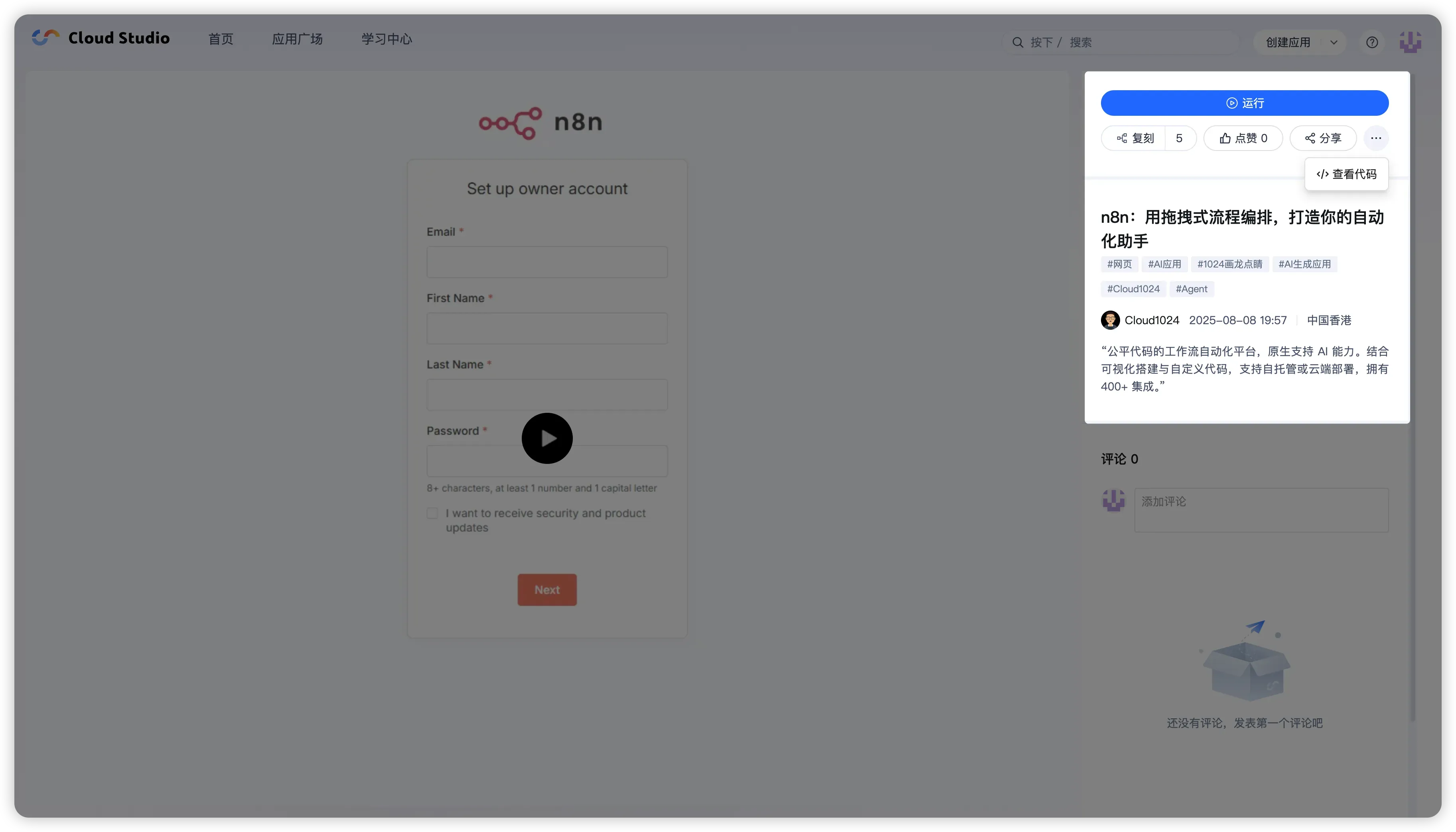 - 应用来源:若该应用是通过复刻获得的,会显示其最初的来源用户及对应应用标题,两者均支持超链接跳转,方便追溯源头。