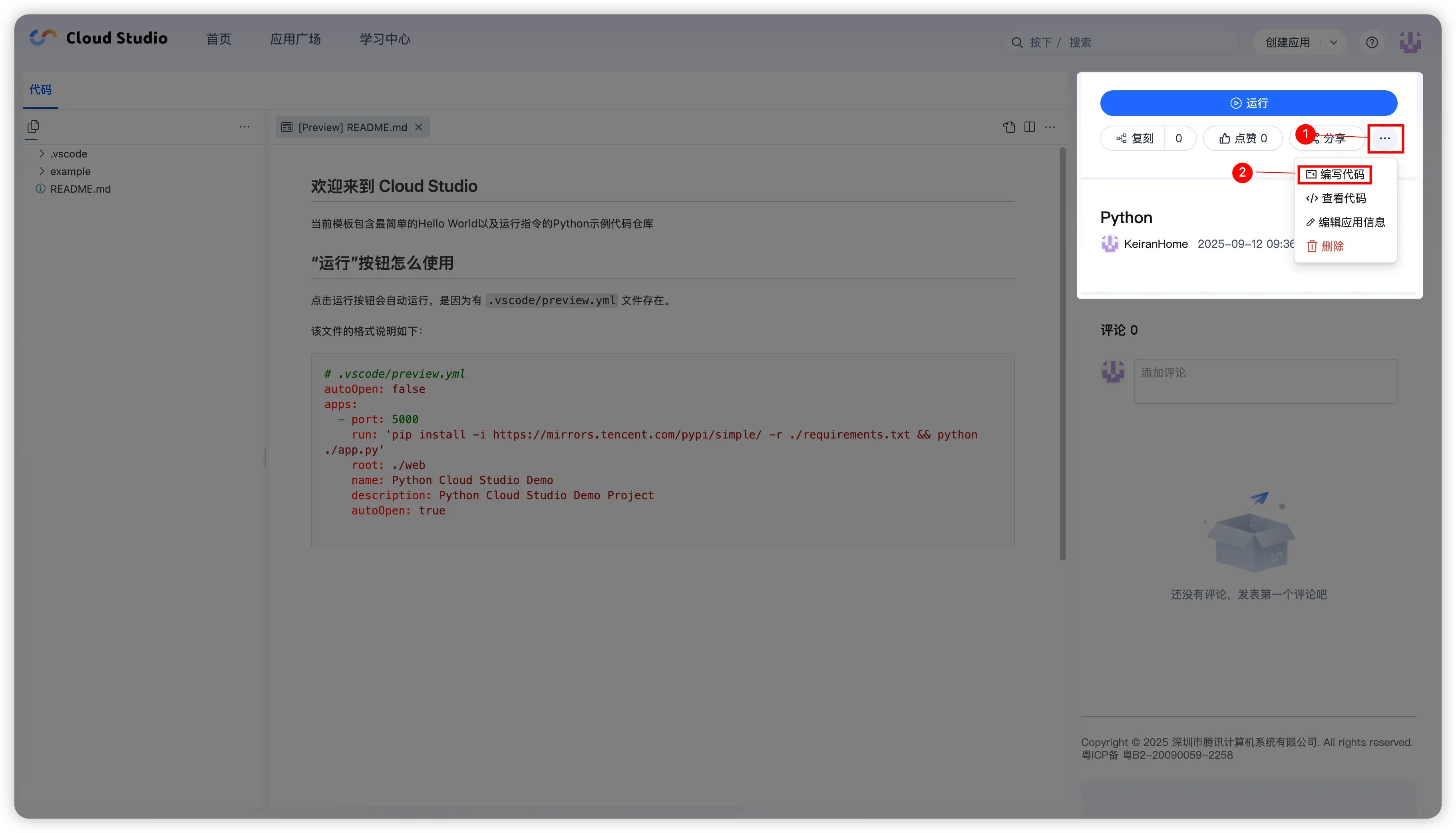 点击进入代码编辑界面后,可对应用的代码进行修改、优化,或拓展应用功能。