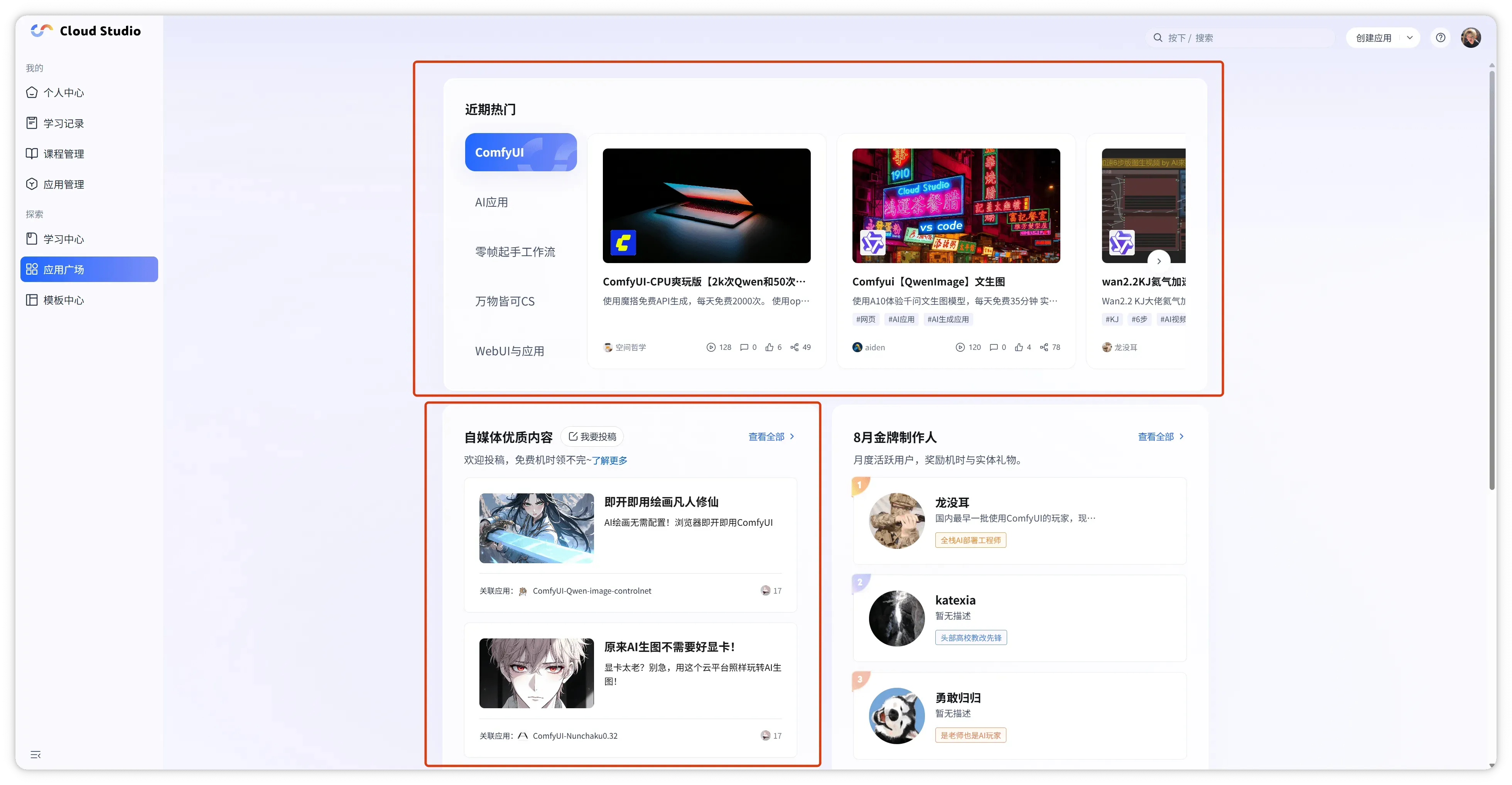 - 推荐依据:运行次数、点赞数、复刻数(用户复用次数)。
