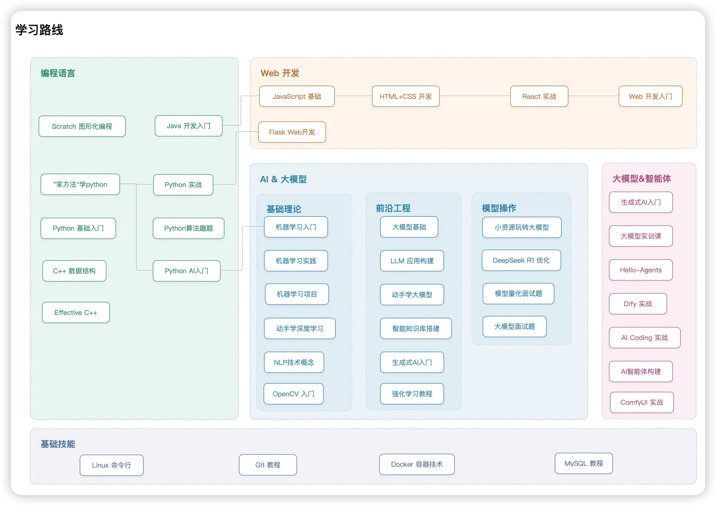 - 编程语言基础:Python / Java / C++ 基础、数据结构与算法等
