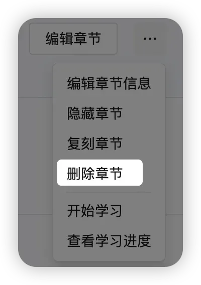 章节右侧 「...」 → 「删除章节」 → 在确认弹窗中按提示再次确认(例如输入章节名称)。