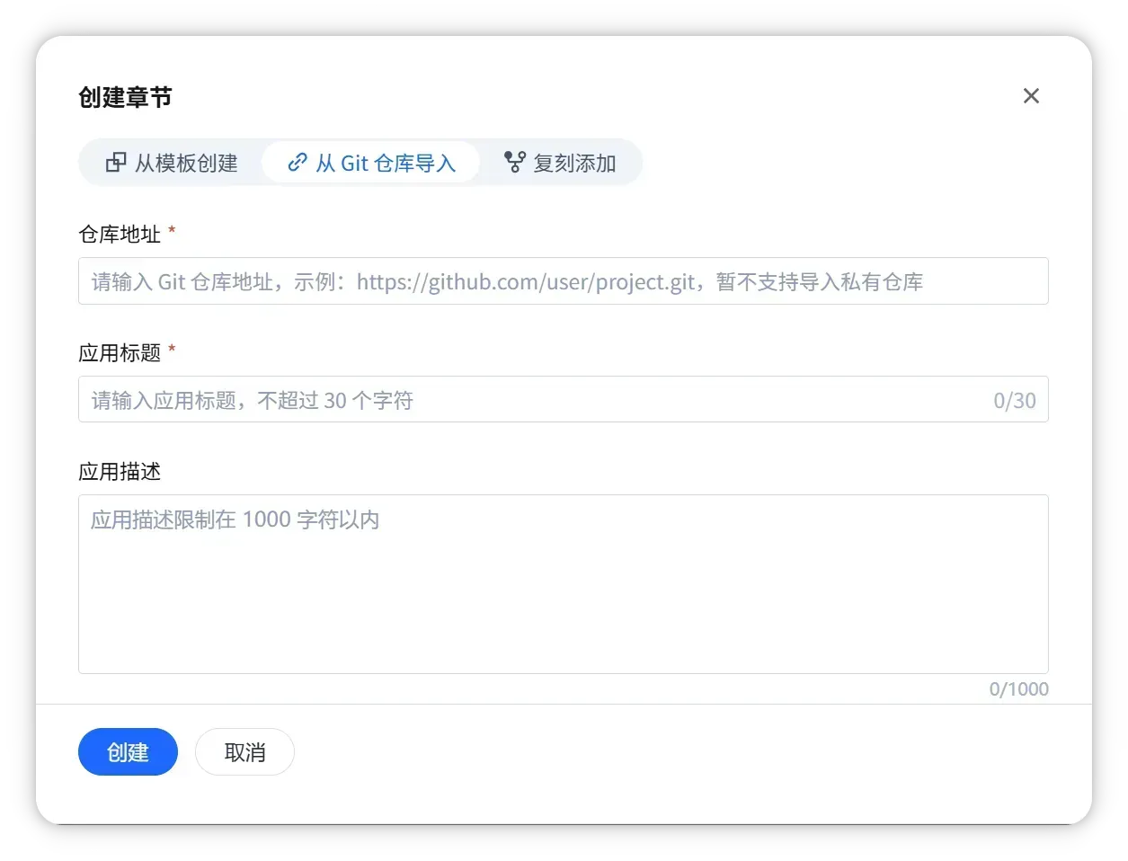 https://github.com/xxx/xxx.git)和 章节标题 - 点击 「创建」