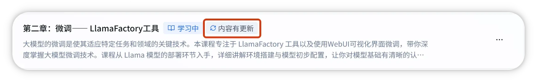 若课程内容有更新,学习界面会显示 「内容有更新」 提示(如图所示),点击即可查看新增或优化的知识点,确保学习内容的时效性。