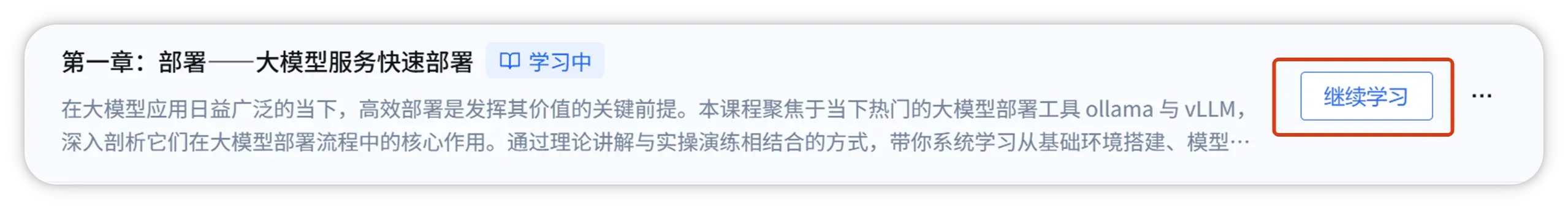退出课程后,可点击课程页面首页 「继续学习」 区域直接跳转到上一次学习记录,进行继续学习。