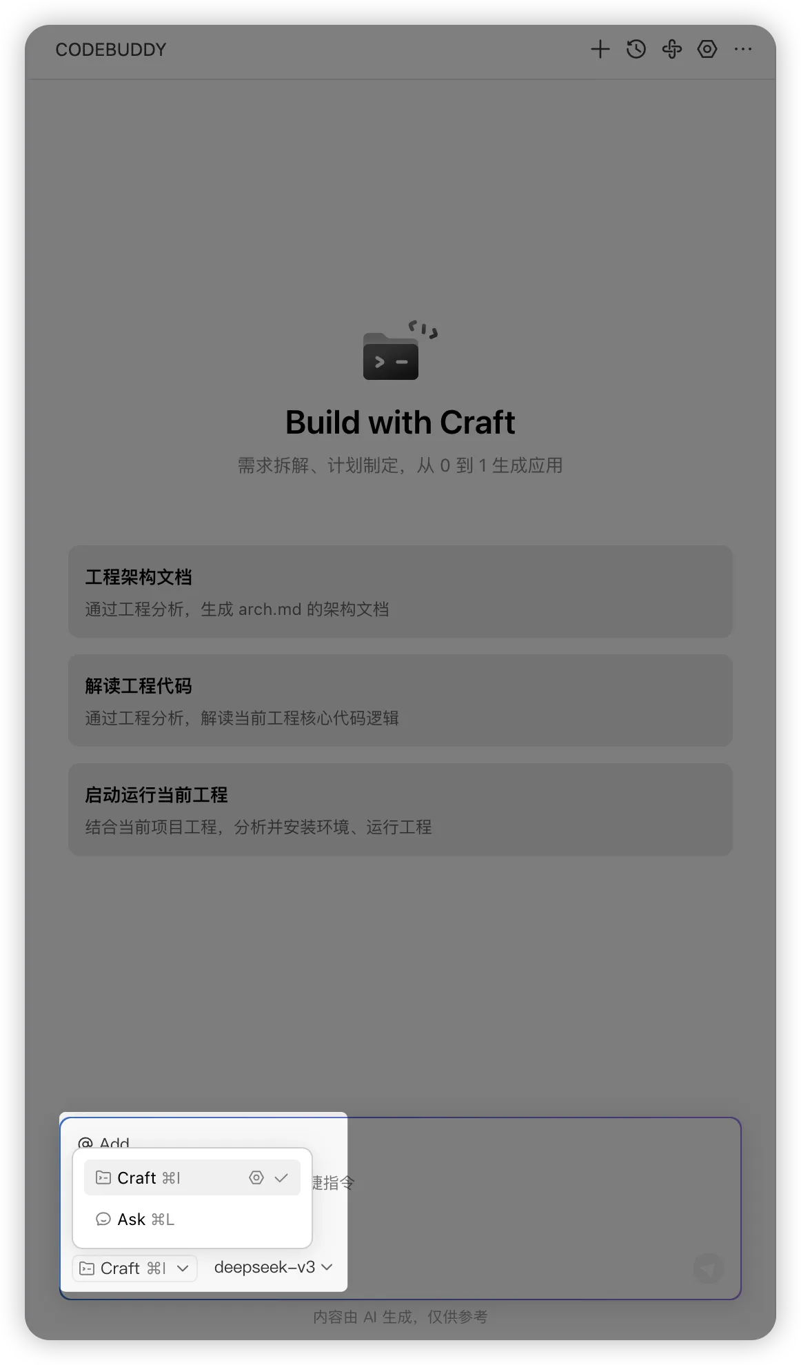 步骤二、使用 Craft 进入智能体自动编码模式