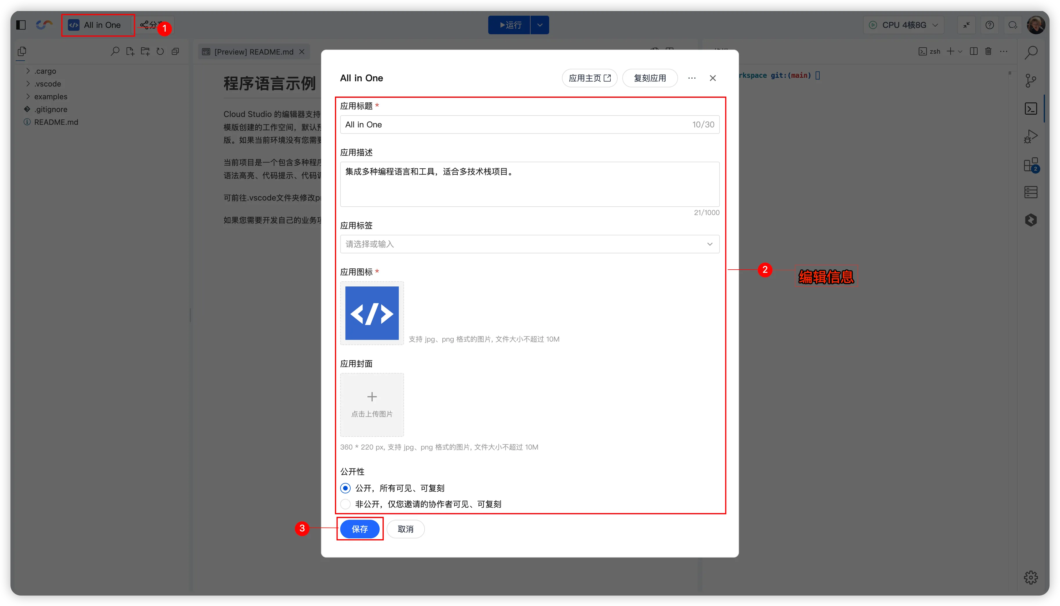 - 自定义封面(提升应用展示效果);