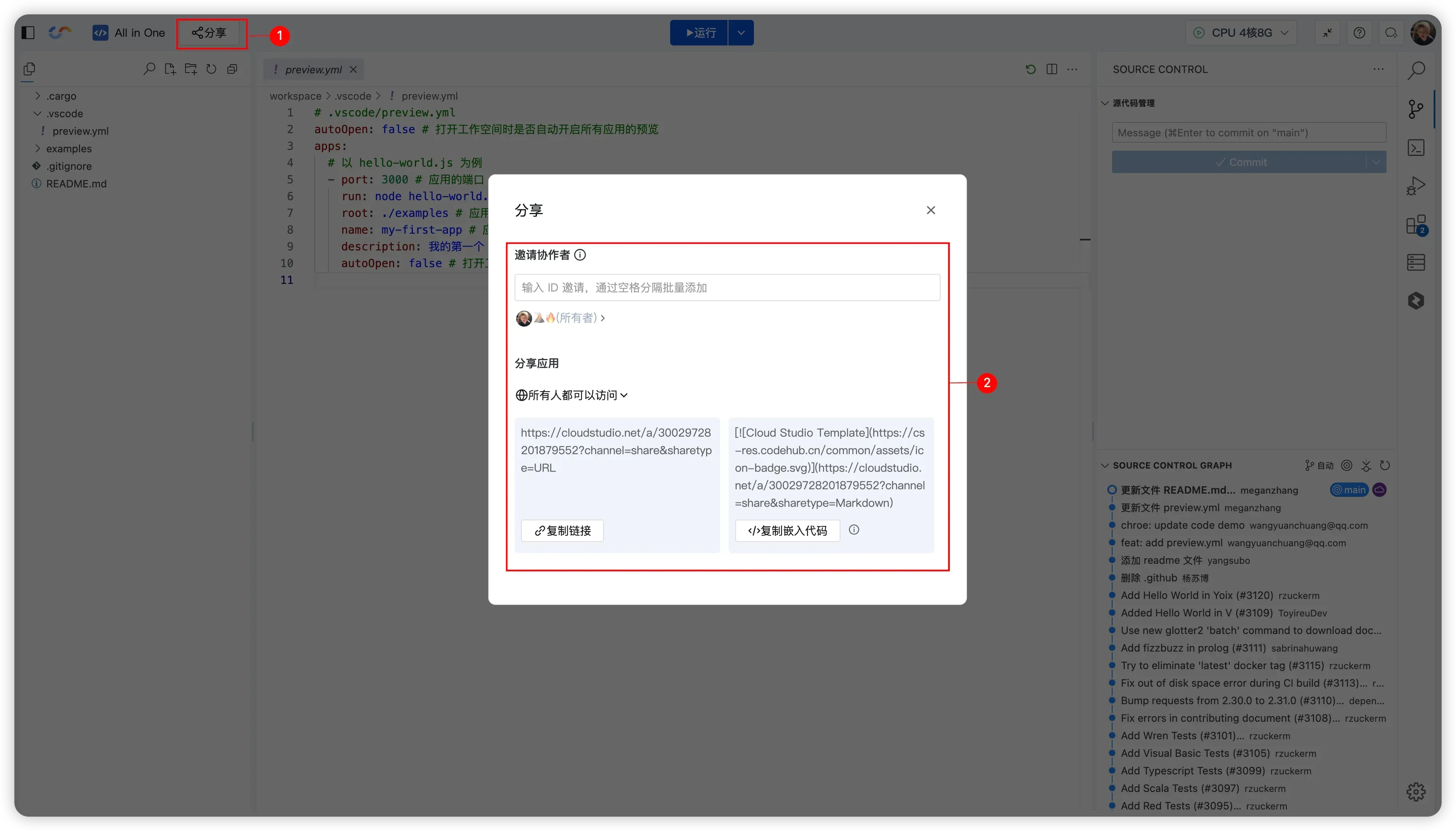 CloudStudio 应用支持多人协作访问,适合 Demo/学习项目 的共同开发与演示。