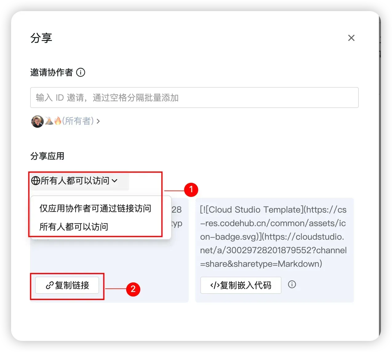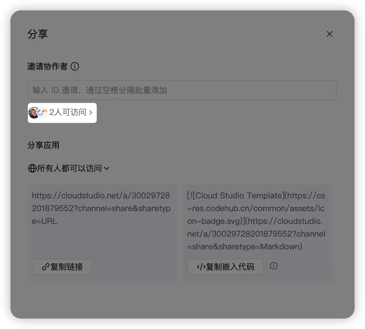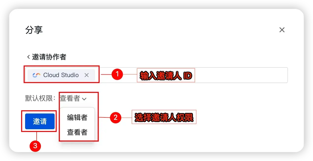 - 对方登录 CloudStudio 后打开链接,即可获得对应权限