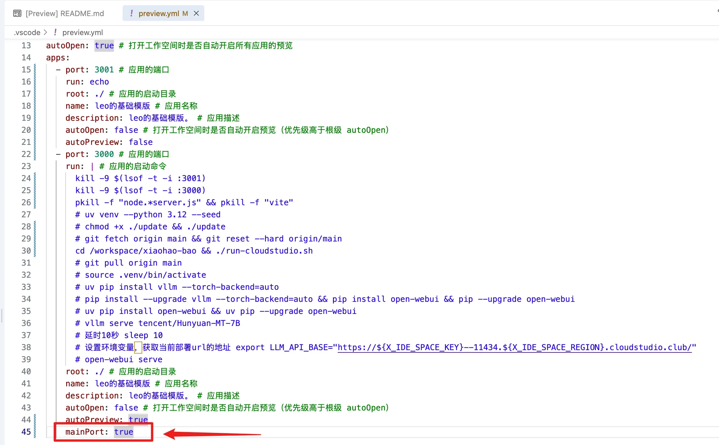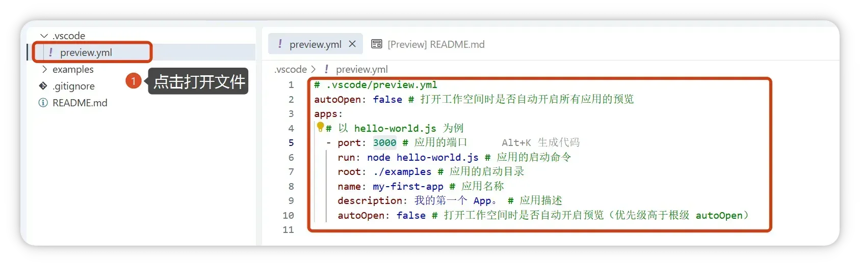 .vscode/preview.yml(需要显示隐藏文件)。 - 作用:定义项目启动命令(
