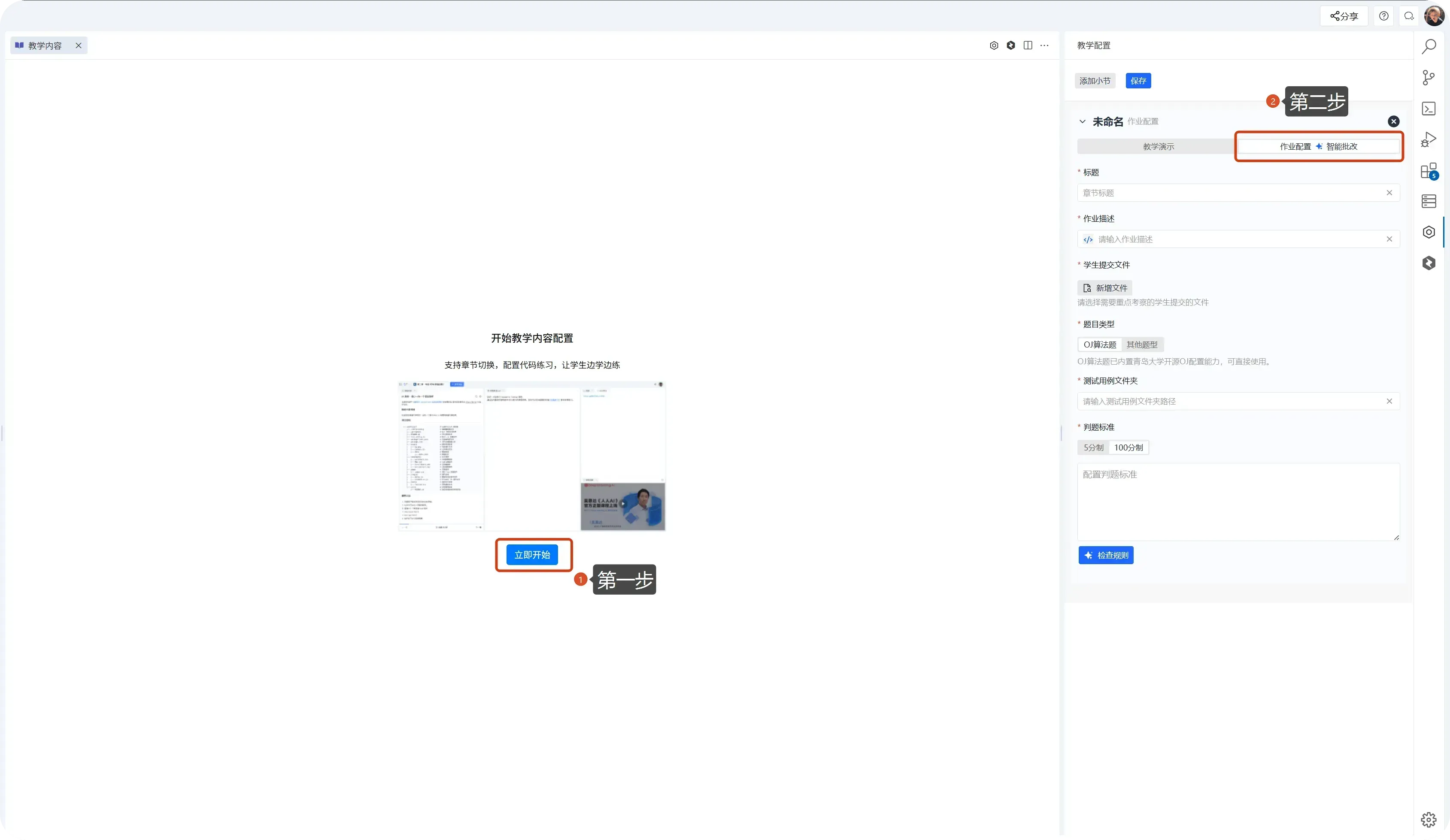 - 首次进入:点击 「立即开始」 → 「作业配置&智能批改」