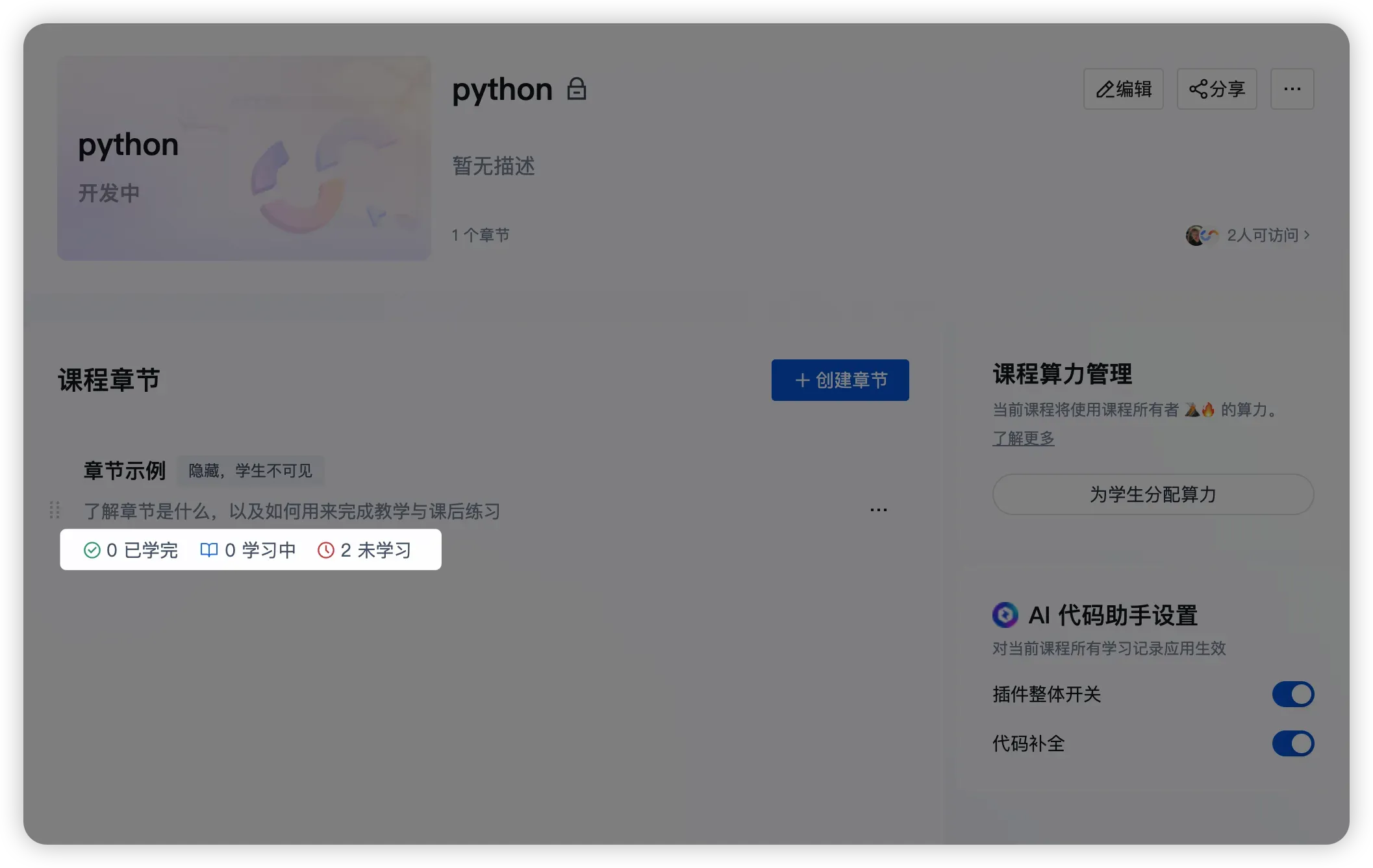 若你看不到 未学完 状态,请确认课程为非公开课程,并且你具备相应管理权限(所有者/老师/助教)。